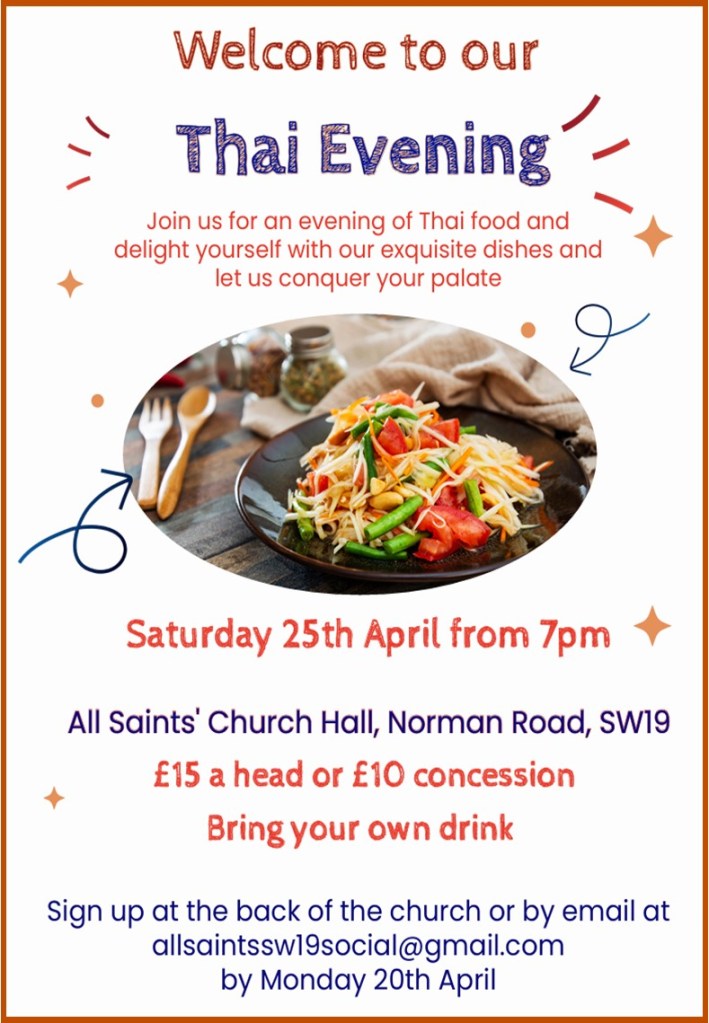 Sign up at the back of the church or e-mail allsaintssw19social@gmail.com
