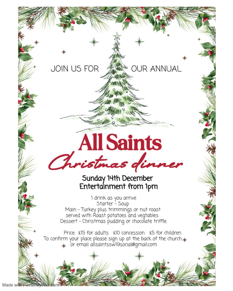 Enquiries about baptisms, weddings and banns of marriage should be made by: e-mail to allsaintschurchSW19@gmail.com – or telephone 020 8542 5514 and leave a clear message.