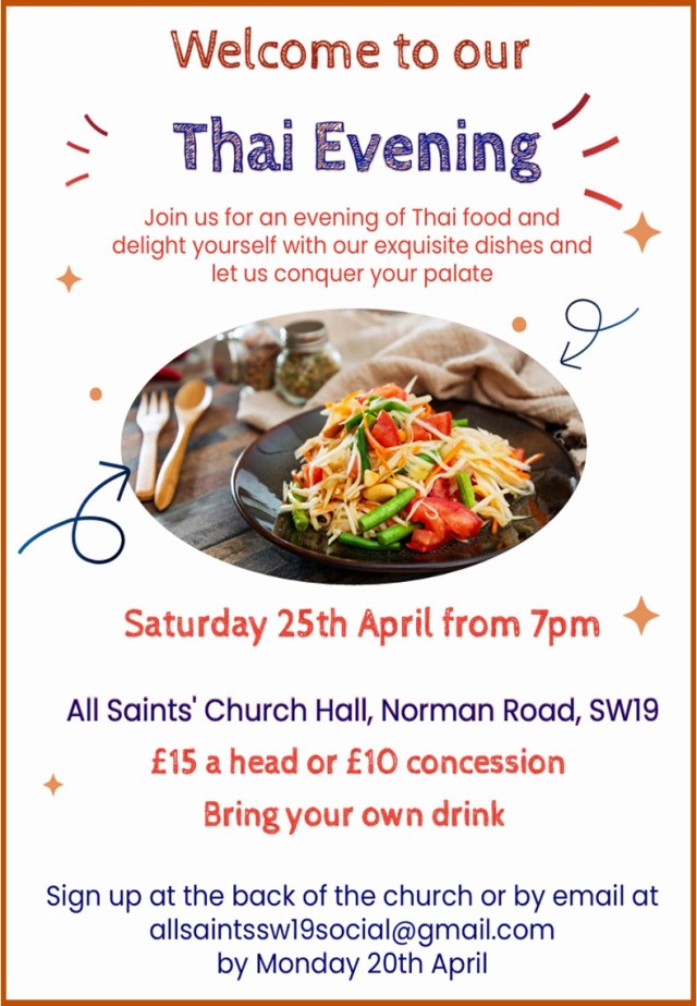 Where: All Saints Church Hall, Norman Road, SW19 1BT