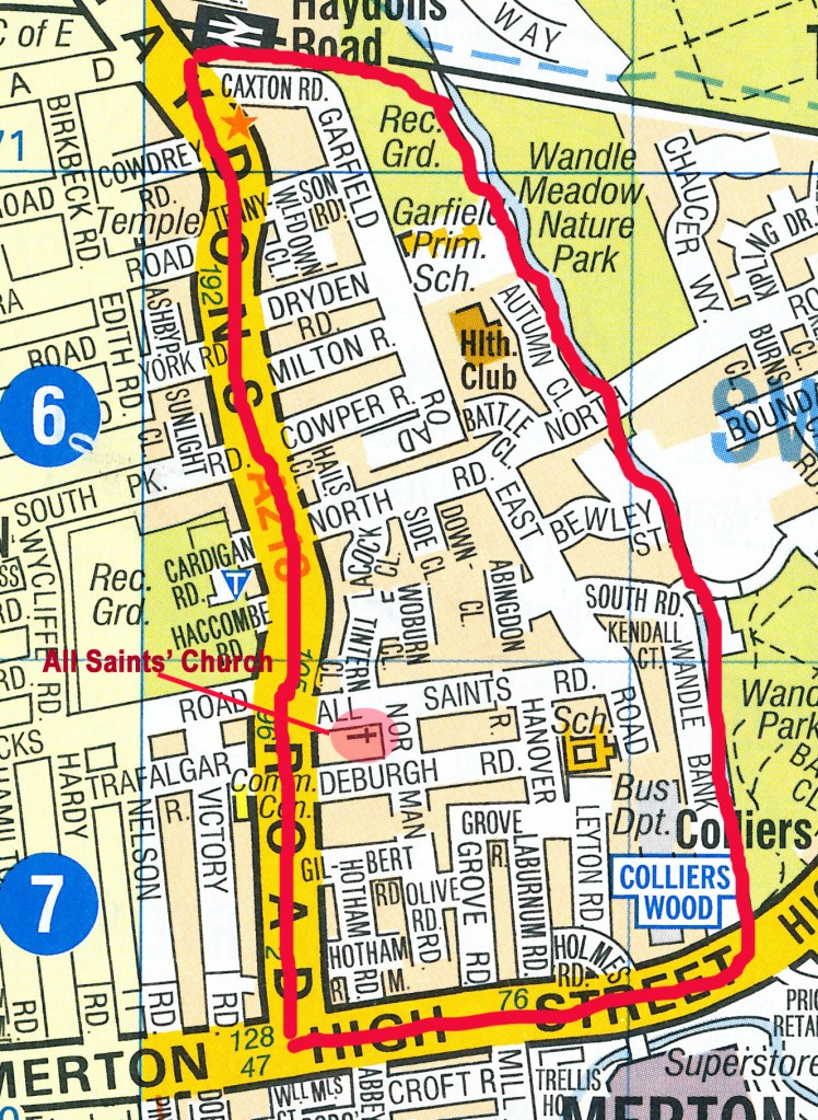 The parish borders comprise Haydons Road to the West, Caxton Road to the North, The River Wandle to the East and Merton High Street to the South. If you live in one of these streets then All Saints’ is your parish church:-